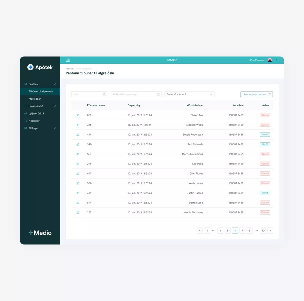 - Lyfjafræðingar geta í framhaldinu afgreitt pantanir í afgreiðslukerfi Medio.